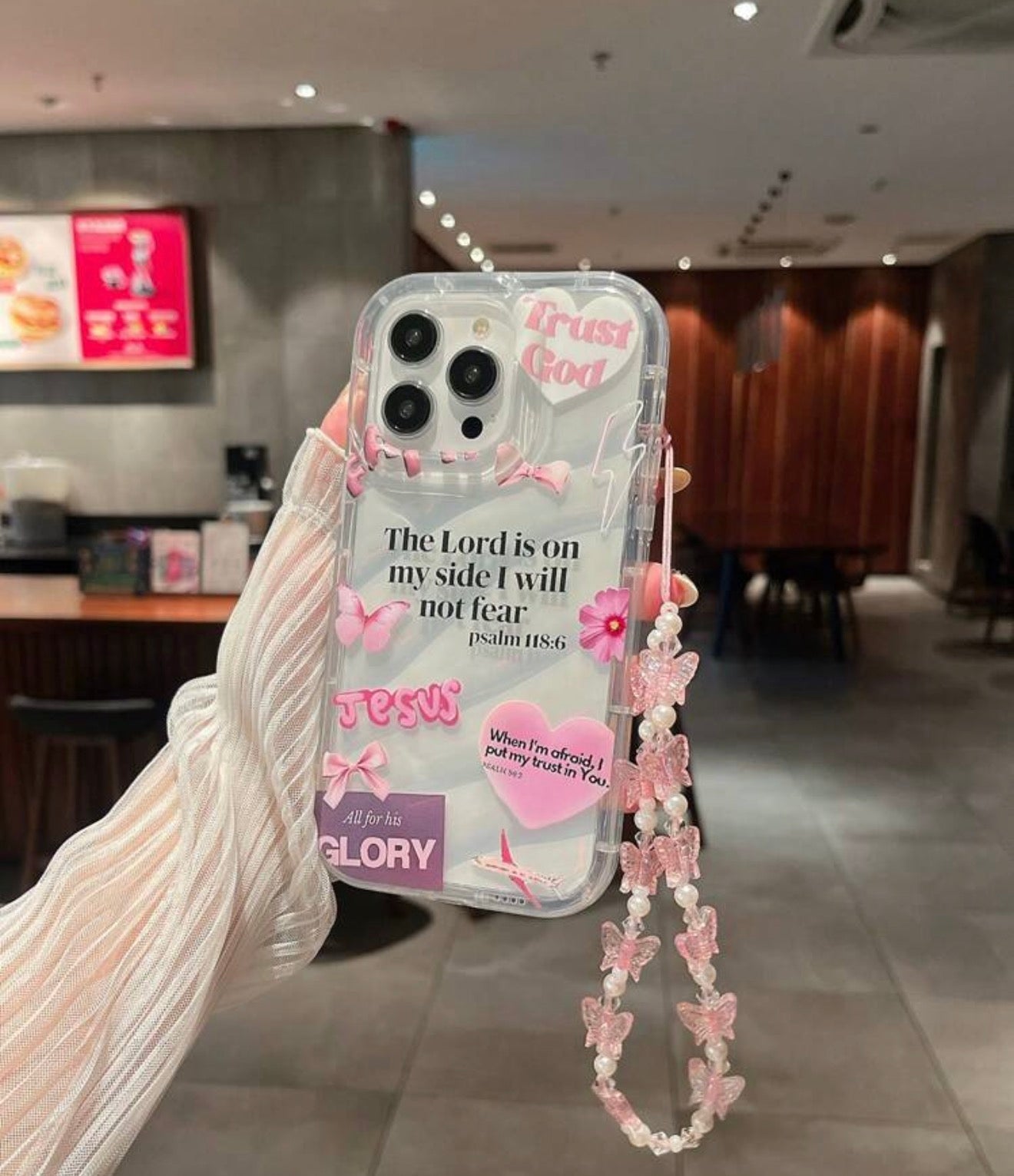 Sweet Trust & Scripture Clear Phone Case | Pink Butterfly Charm